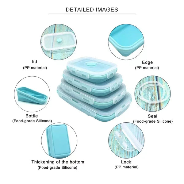 Our containers go beyond basic—they collapse to save up to 60% space, seal tight to keep food fresh, are made from BPA-free, food-grade silicone for peace of mind, and clean up in seconds. All of this, without breaking the bank.